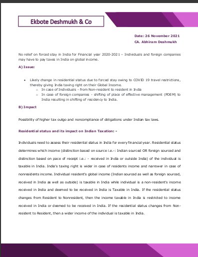 Taxability on NRI staying in India due to COVID 19