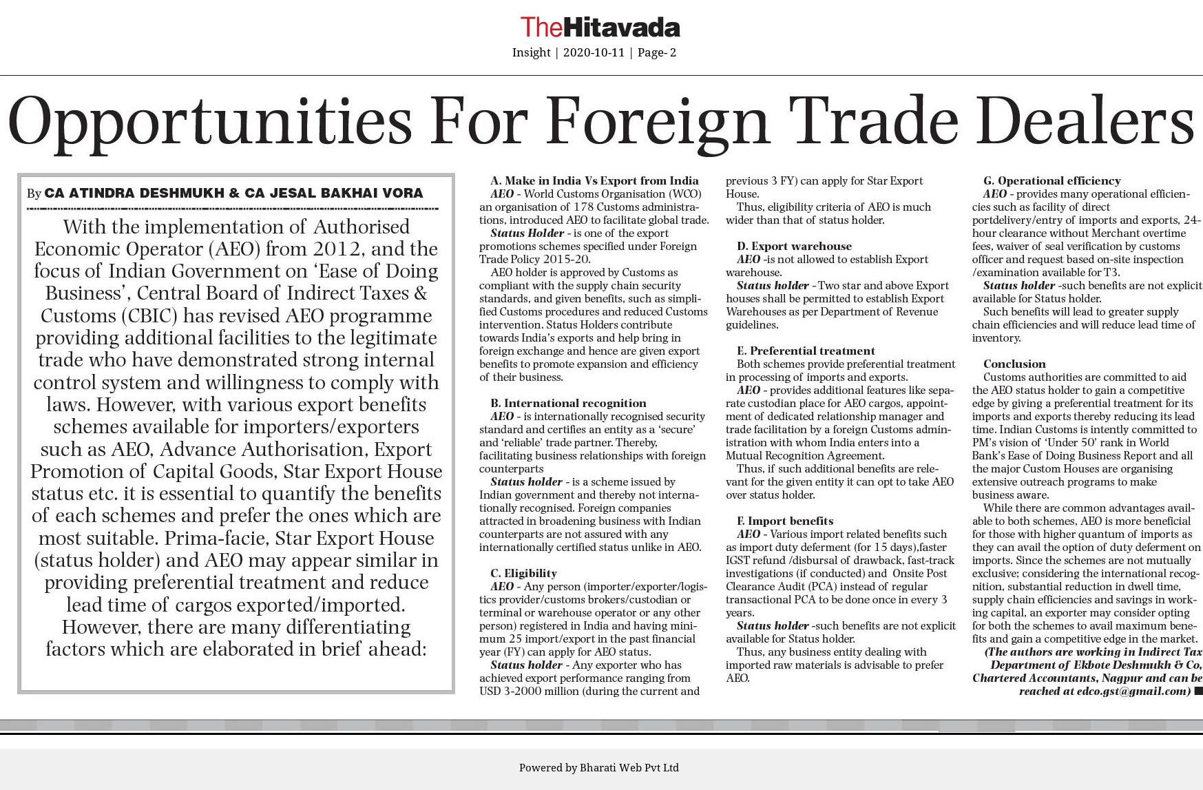 Opportunities for foreign trade dealers